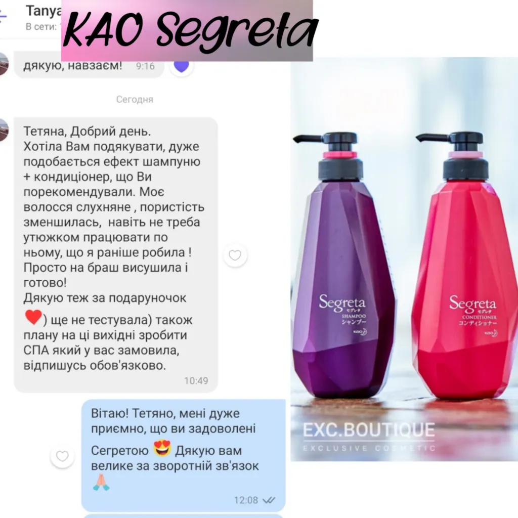 Для кращого ефекту рекомендується використовувати в комплексі із кондиціонером серії KAO SEGRETA.