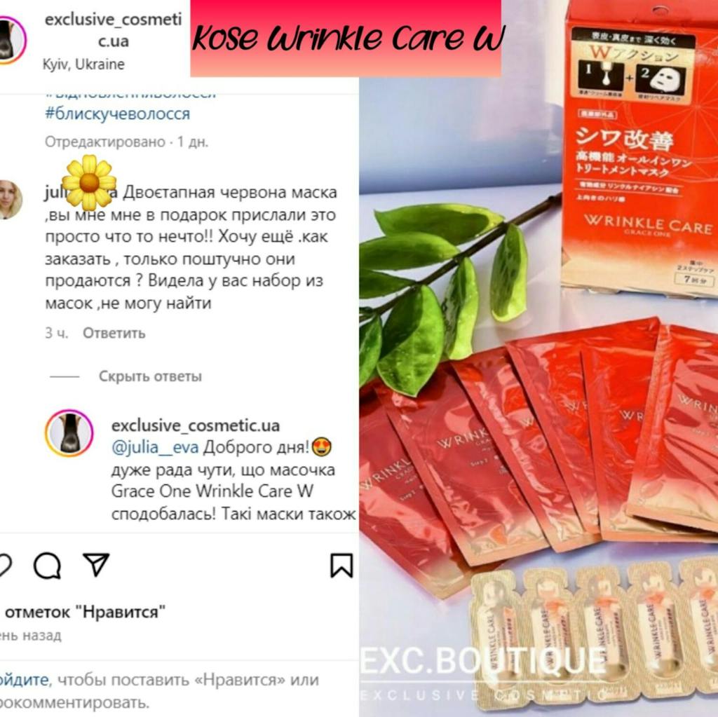 Маски Kose Wrinkle Care W Concentrate Mask - це професійний догляд! Вони можуть використовуватися як в салонах краси косметологами, так і в домашньому догляді.