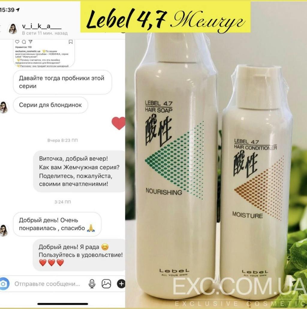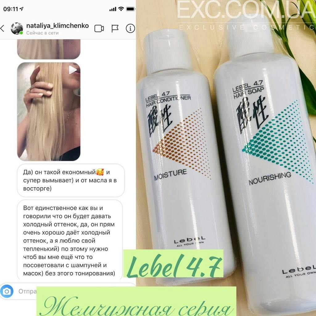 Освітлене і пофарбоване в блонд волосся потребує особливого догляду. Саме такий догляд пропонує перлина серія японського бренду Lebel. Lebel РН 4.7 moisture conditioner має унікальну формулу, в основі якої протеїни натуральних перлин та екстракт водоростей, що сприяють дбайливому очищенню та збереженню холодного відтінку фарбованого волосся.