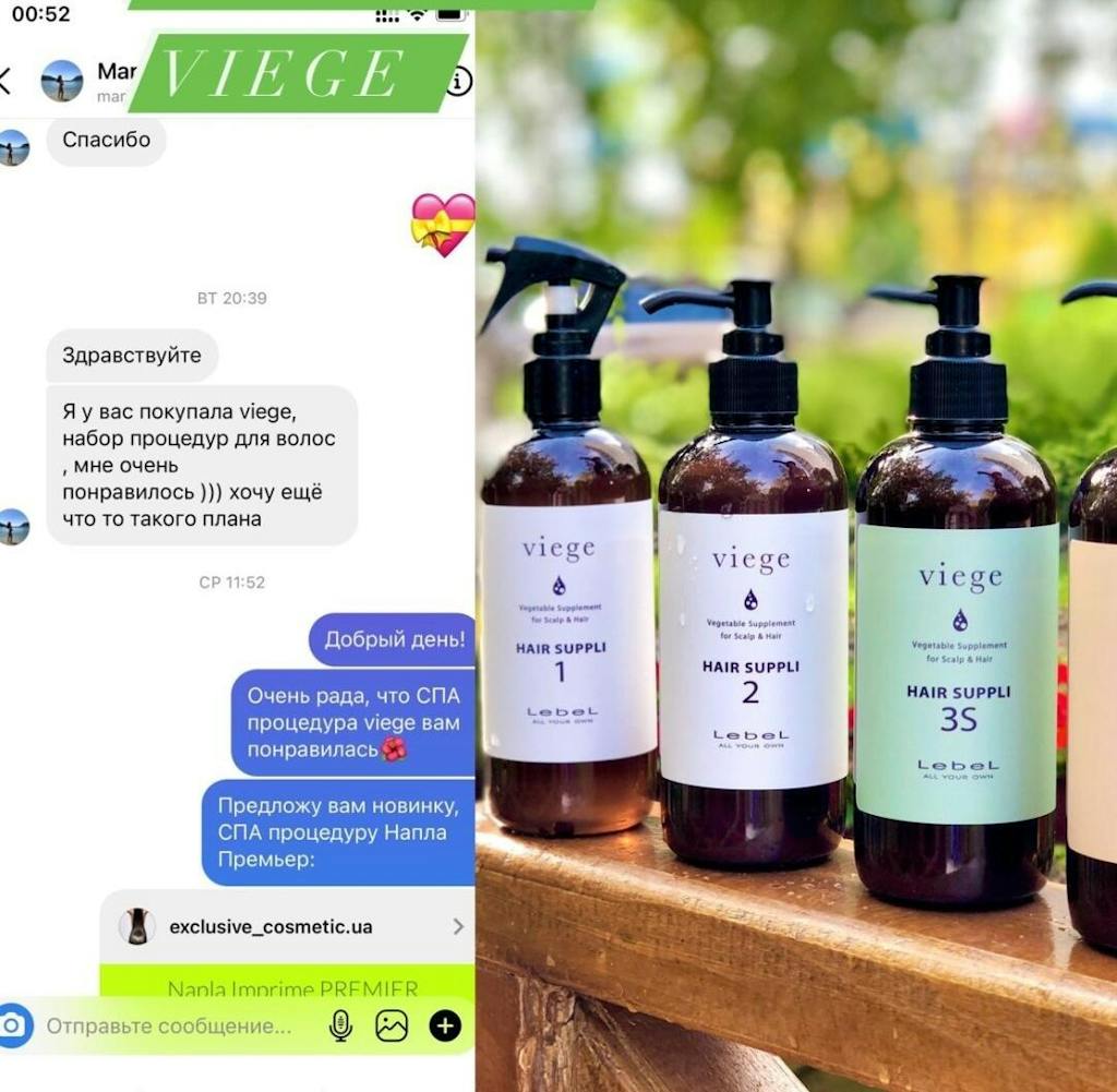 - Viege Hair Suppli 3V (Volume об'єм), який відновлює гнучкість волосся, надає об'єм та зволожує