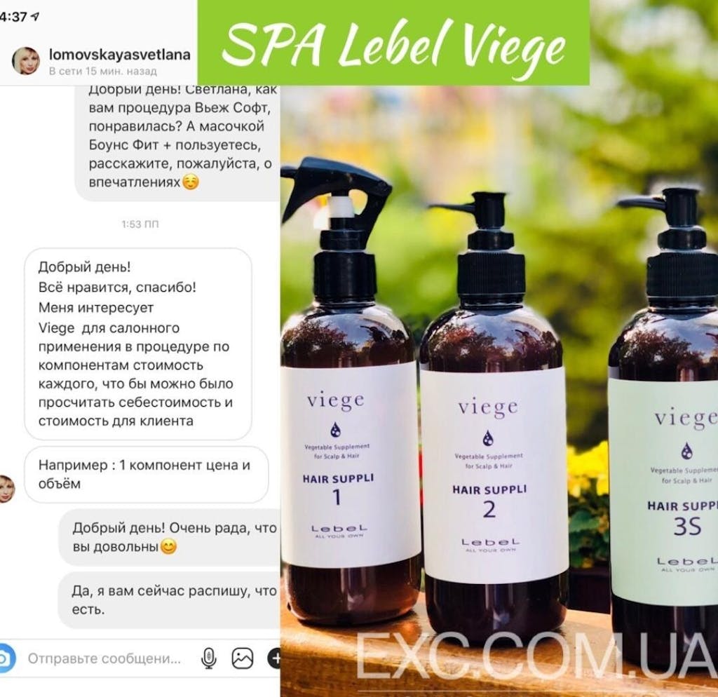 Lebel Viege Hair Menu – інноваційна SPA-процедура від японського бренду Lebel. Програма спрямована на інтенсивне відновлення та омолодження волосся. Косметика преміум-сегменту забезпечує професійний догляд, надаючи локонам блиск, силу, еластичність.