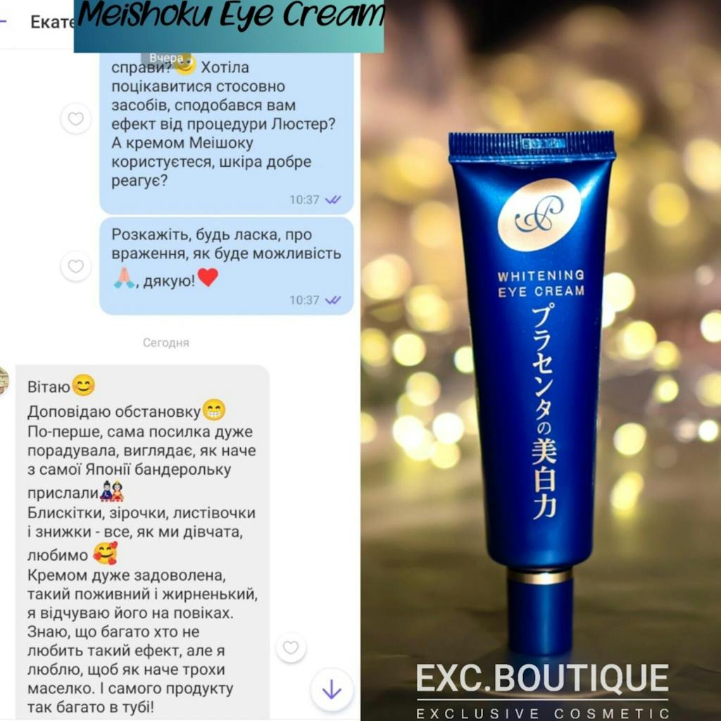 Medicated Placenta Whitening Eye Cream - один з найбільш продаваних кремів у Японії (більше мільйона проданих упаковок з моменту старту продажів!) і є багаторазовим переможцем японського рейтингу Cosme в номінації "Крем року".