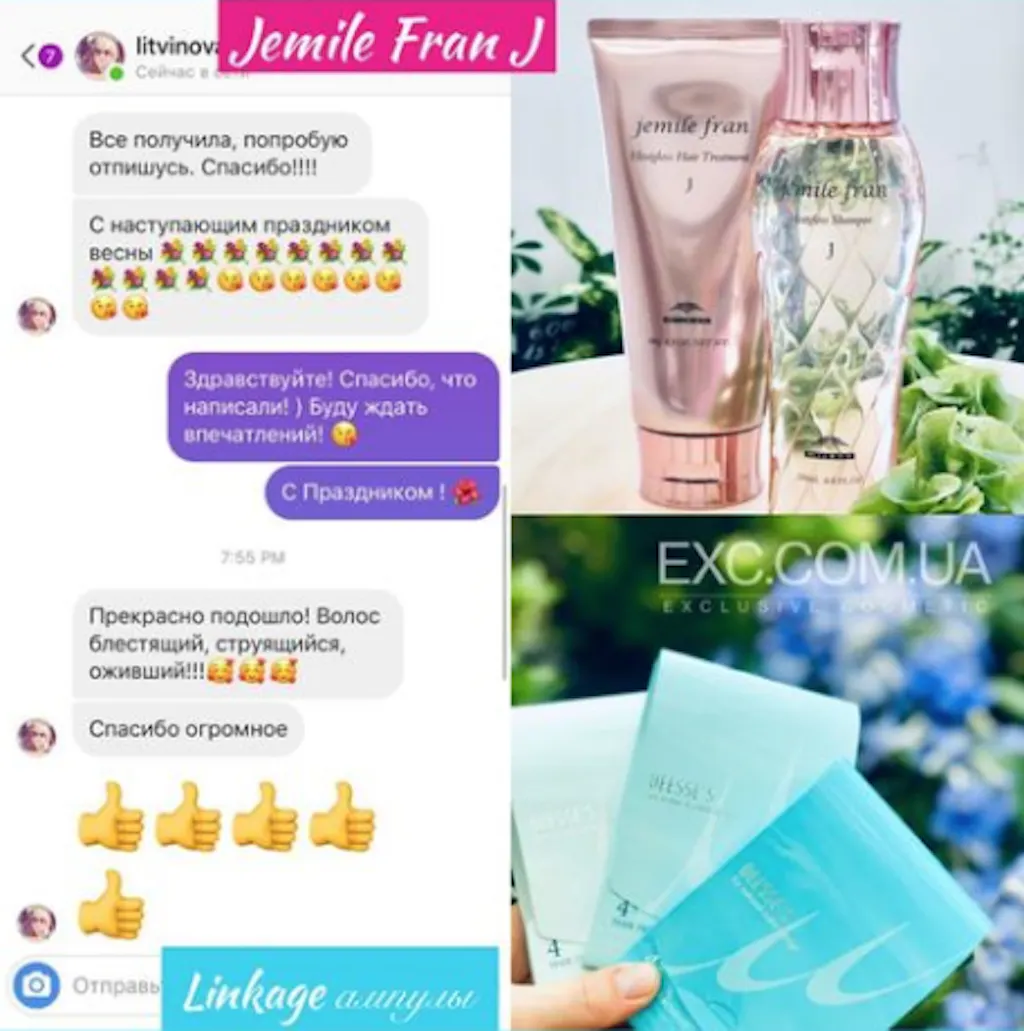 Шампунь належить до професійних косметичних продуктів. Засіб має не тільки візуальний ефект, але й лікує пошкоджене волосся. Рекомендовано використовувати у комплексі з маскою Jemile Fran.