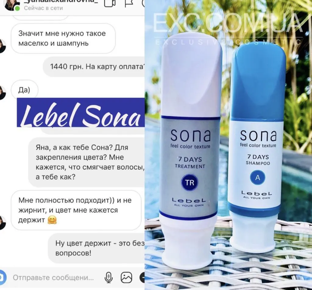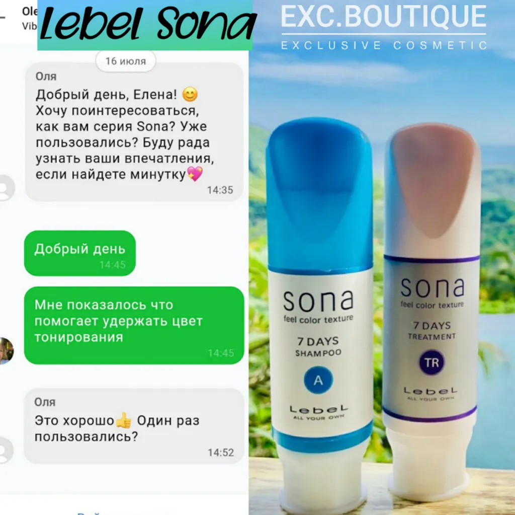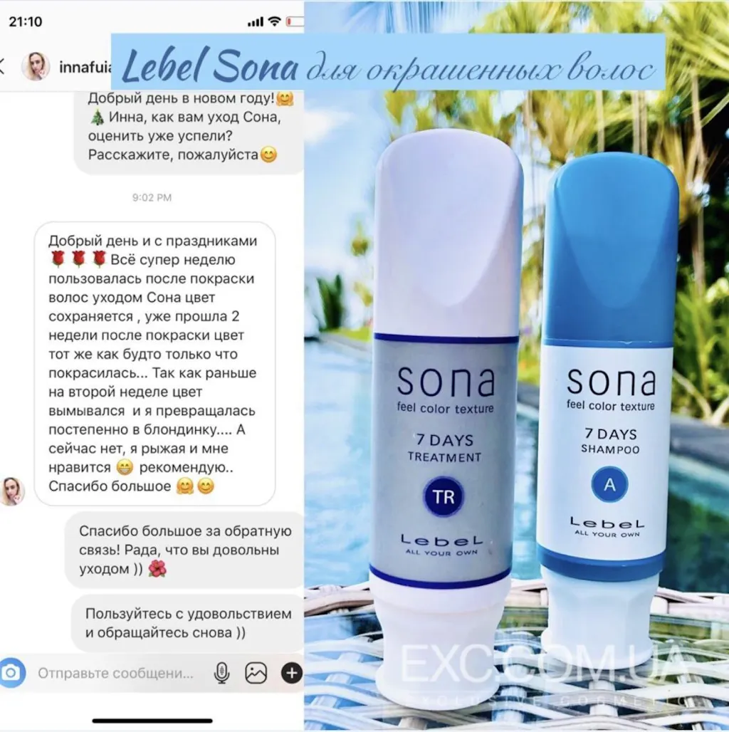 - Sona shampoo, шампунь для закріплення та пролонгації кольору фарбованого волосся