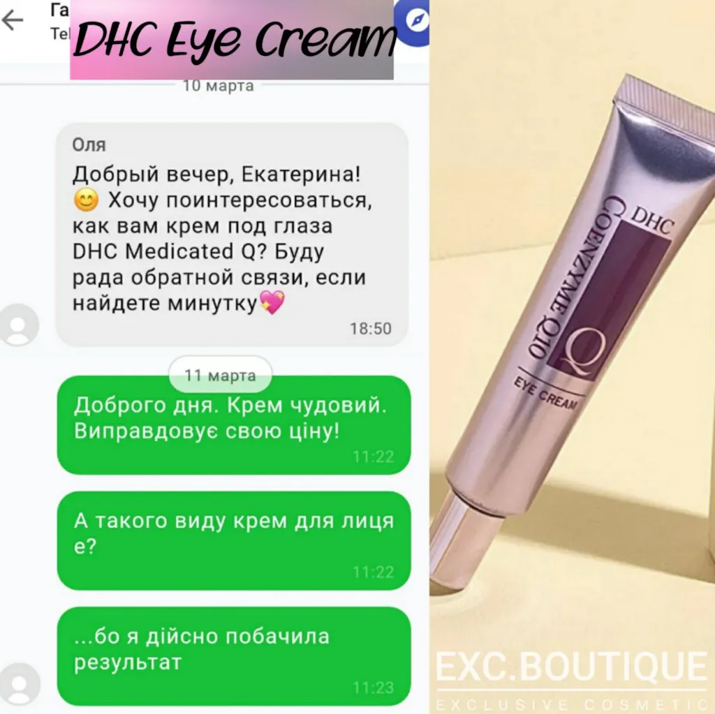 Крем DHC Eye Cream Medicated Q10 имеет легкую комфортную текстуру, мгновенно впитывается в кожу, увлажняет её, делает незаметными признаки усталости и выравнивает морщины.