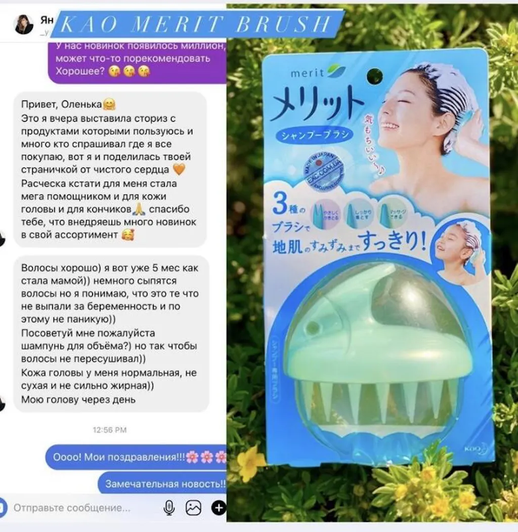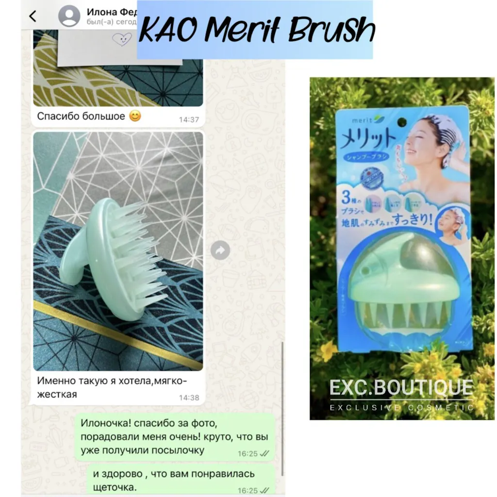 Щеточку можно использовать во время мытья головы шампунем, также она во много раз увеличивает эффективность масок и бальзамов для кожи головы, а использование щетки KAO Merit со спреями для кожи - просто обязательно! Ведь действие любого спрея для кожи увеличивается в несколько раз.