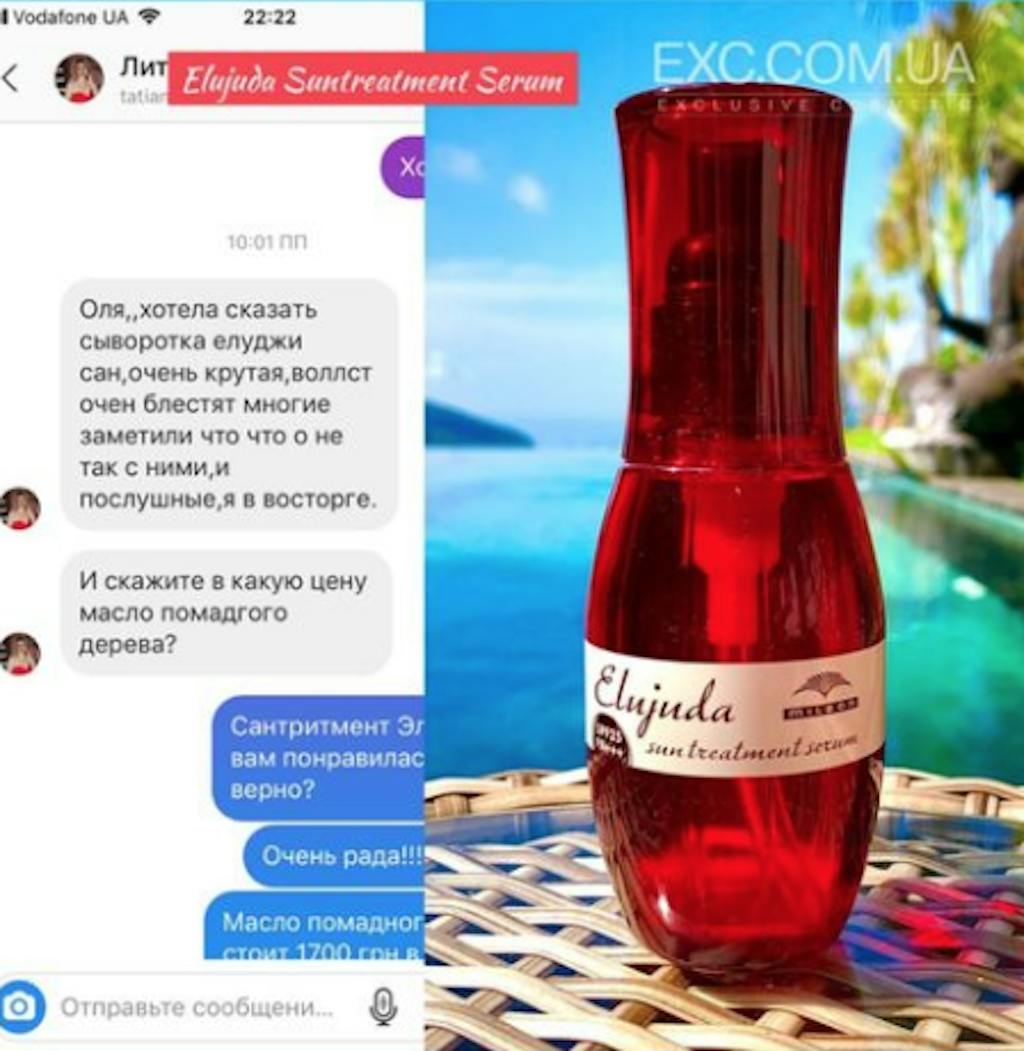 Масло Elujuda Sun Treatment Serum SPF 25 может также использоваться как ежедневный уход за секущимися кончиками.