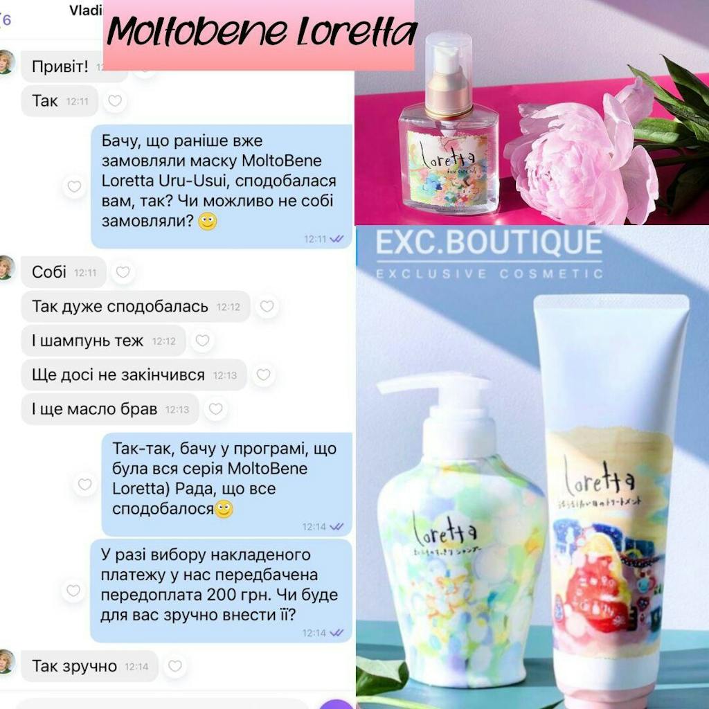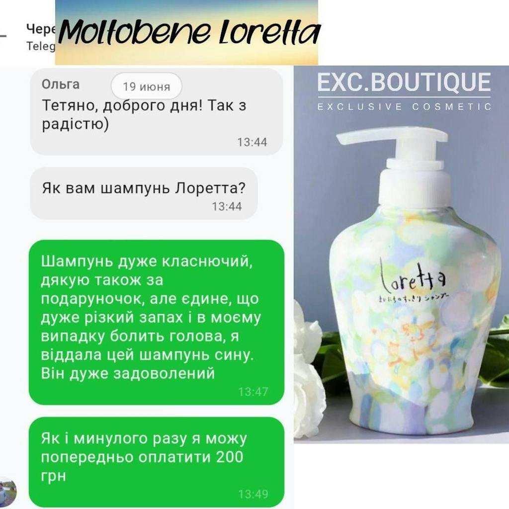 Это уникальное сочетание ультрасовременной формулы косметических средств и легкого, воздушного почти "детского" дизайна. Хотелось бы в этом шампуне отметить особый дизайн - в линейке Loretta использованы иллюстрации японского художника Моримото Хидеацу.