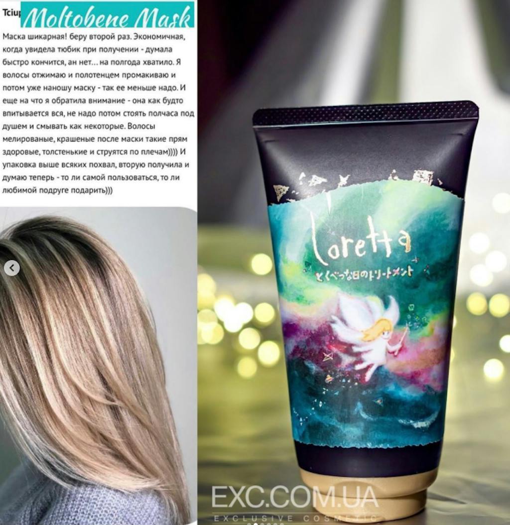 Восстанавливающая маска для волос от японского бренда Moltobene легко выделяется на полках среди других товаров не только благодаря своему уникально подобранному составу, но и интересному, яркому и необычному дизайну, который уже можно назвать фирменным в линейке MoltoBene Loretta. В дизайне использованы иллюстрации японского художника Моримото Хидеацу, что придаёт им ещё большую ценность. Маска станет не только прекрасным помощником в уходе за Вашими волосами, но и отличным подарком для Ваших близких и родных.