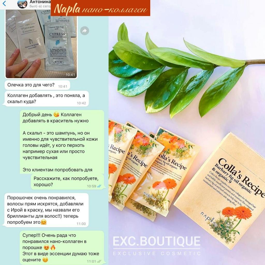 Порошок Napla Colla's Recipe увлажняет волосы, улучшает их структуру и качество, обеспечивает стойкость результата от процедуры и нивелирует негативное влияние термического и химического воздействия на локоны.