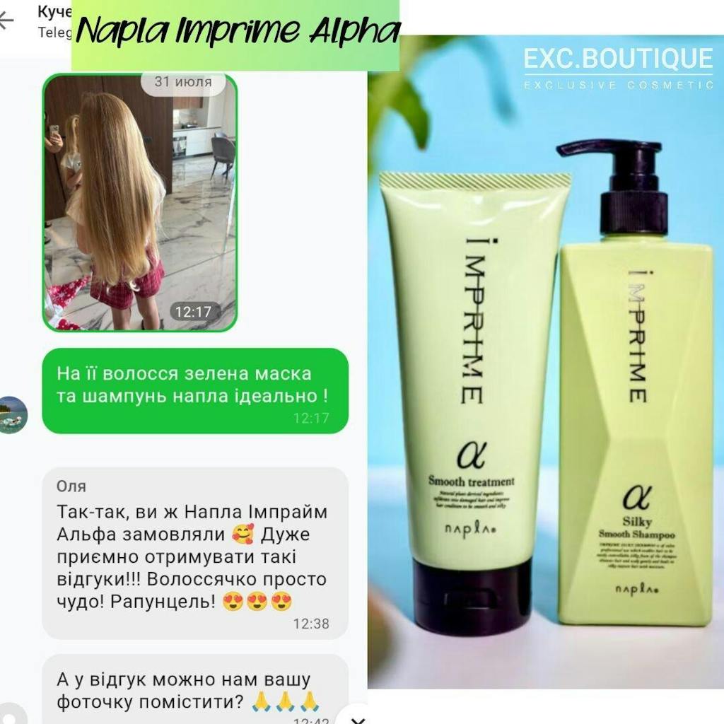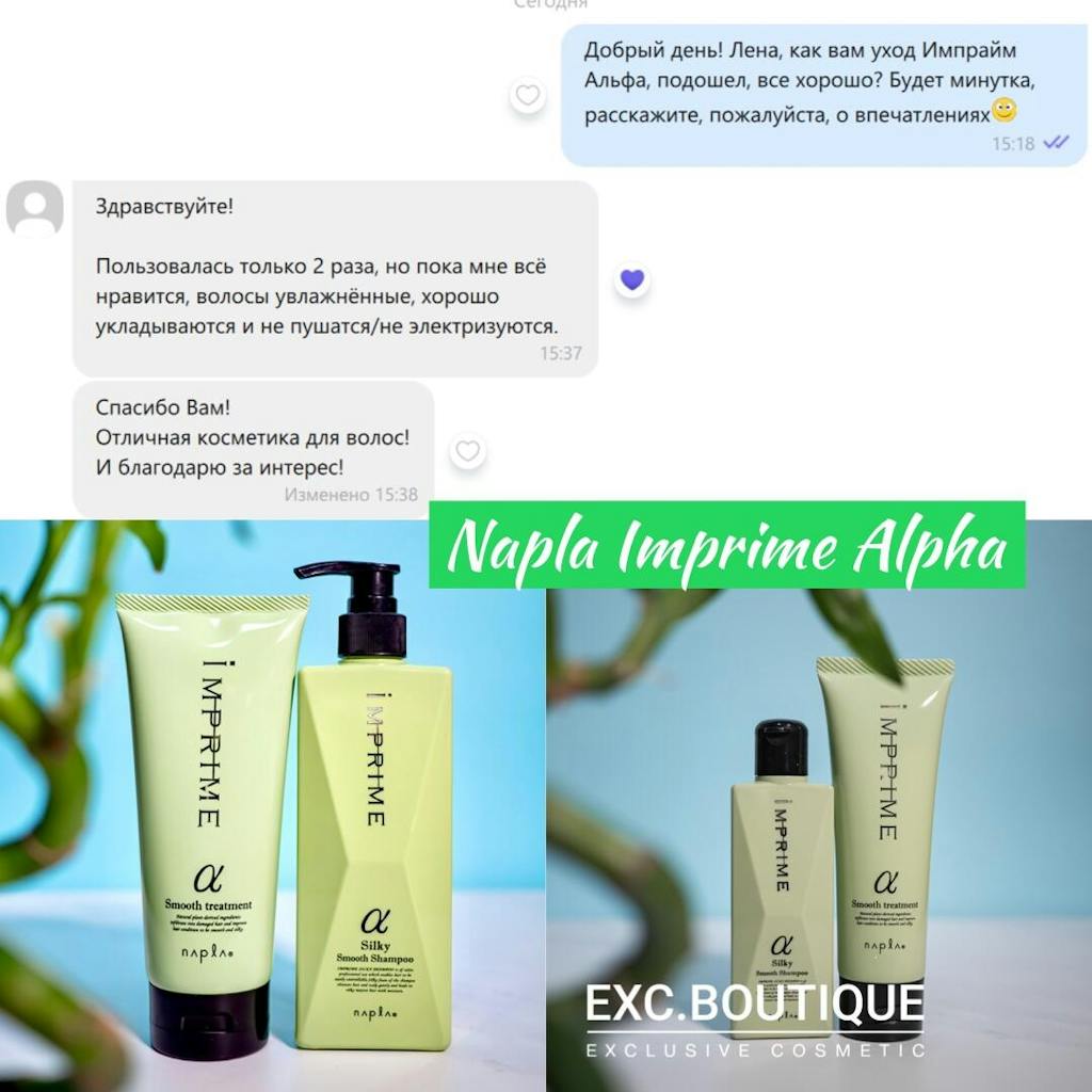 Маска продолжает эффект триэтапного салонного восстановления структуры волос Imprime Repair Method. Шелковая маска Imprime Smooth Silky Treatment Alpha имеет плотную кремовую консистенцию, приятный аромат и очень экономна в использовании. Очень хорошо распределяется по волосам, глубоко заполняя восстанавливающими компонентами поврежденную структуру волоса, не утяжеляя его.