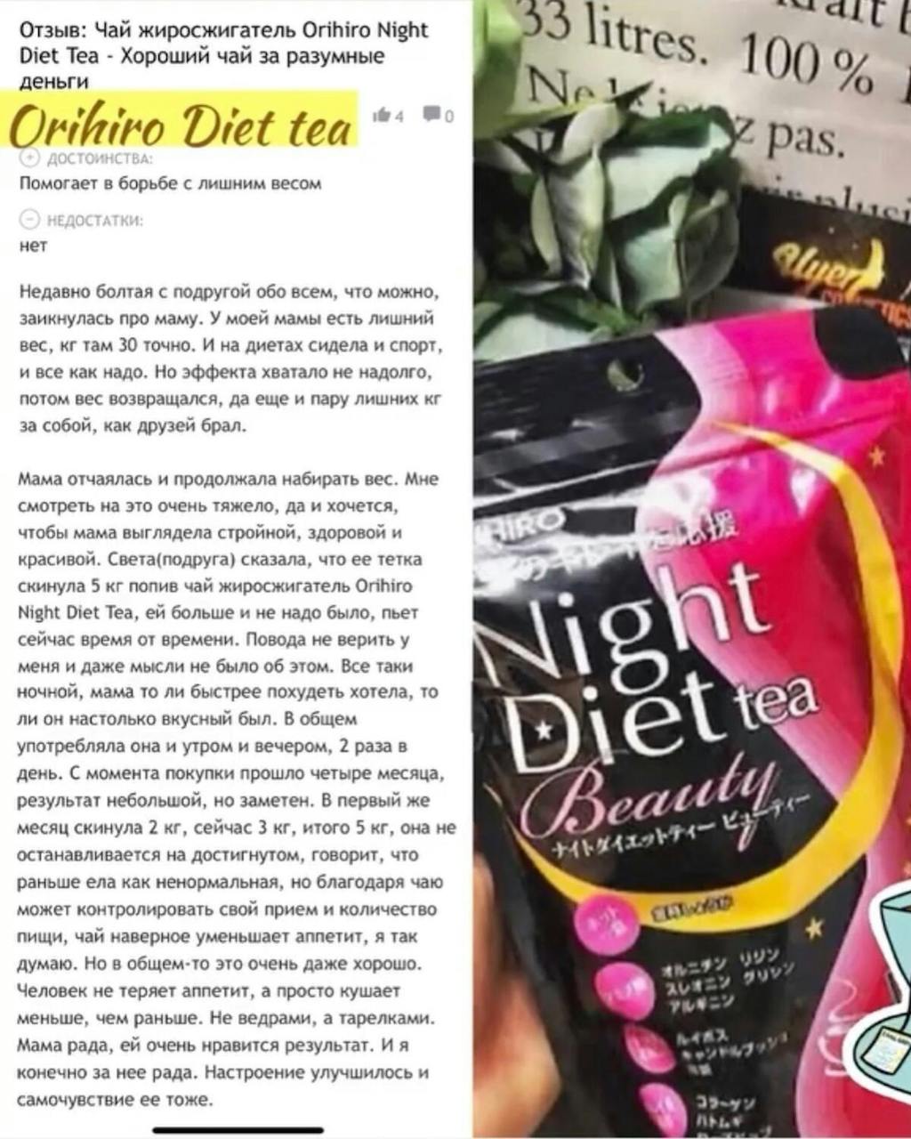 ORIHIRO Night Diet Tea Beauty — высококачественный чайный напиток, который очистит организм от шлаков, нормализует работу желудочно-кишечного тракта, а также поможет вам достичь желаемых результатов в контроле веса и будет иметь тонизирующий и оздоровительный эффект на организм в целом.