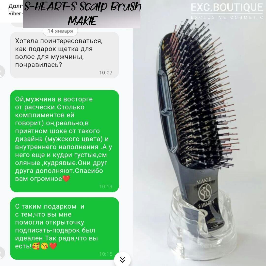 S-HEART-S Scalp Brush Makie Black — это премиальная щетка для расчесывания волос и нежного массажа кожи головы, подходящая для всех типов волос, в том числе коротких и средней длины, мягких, тонких, объемных, кудрявых или прямых.