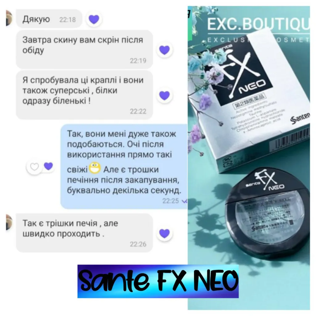 Самые популярные в Японии капли для глаз Sante FX Neo избавляют от покраснения, сухости, зуда и усталости. Они также помогают устранить следующие симптомы: Воспаление и профилактика заболеваний глаз (после купания, воздействия ультрафиолетовых лучей, дыма и т. д.). Зуд при аллергических реакциях (из-за пыли и других аллергенов, попавших в глаза). Размытость... Подробнее...