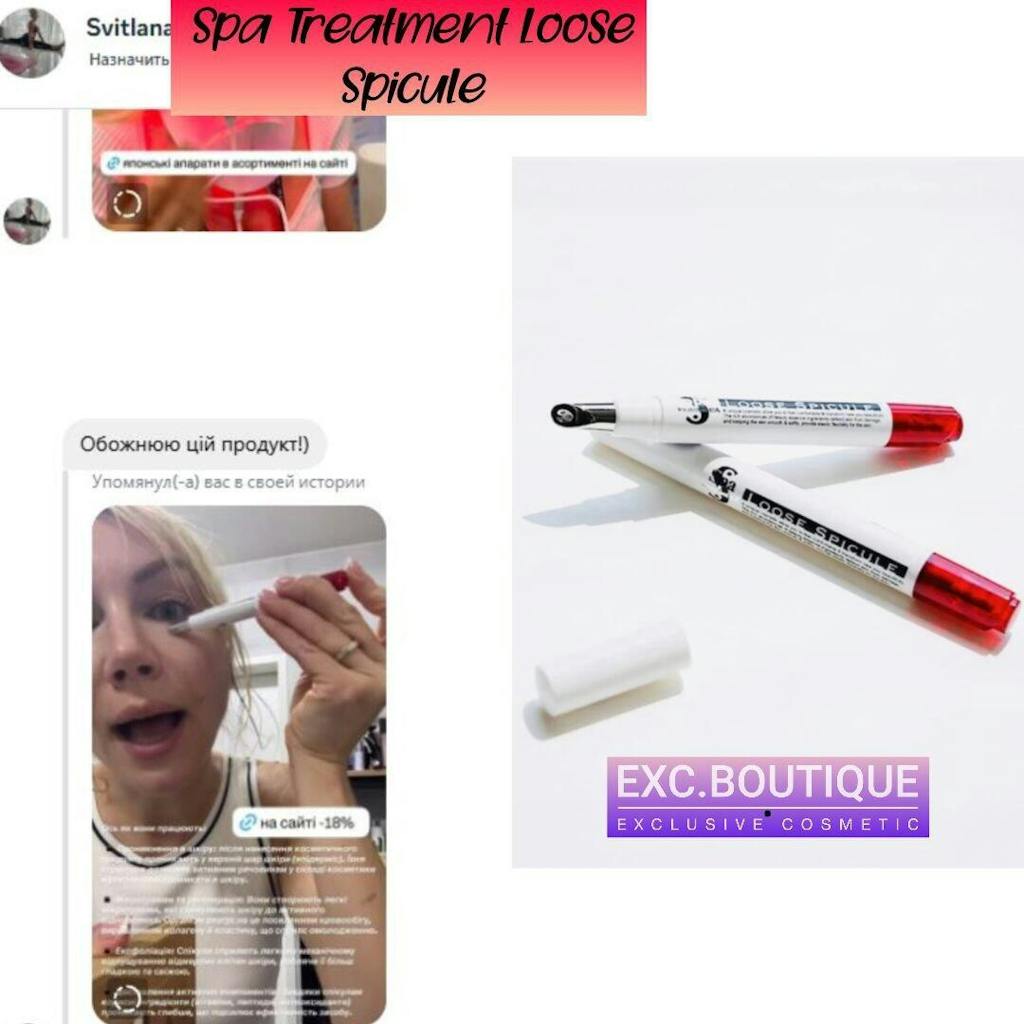 Loose Spicule от Spa Treatment — японская антивозрастная сыворотка с микрокристаллами гиалуроновой кислоты, сформированными в виде пирамид и сенсо-спикул (до 250 мкм в размере), которые полностью проникают в верхний слой кожи, создавая эффект "жидкого микронидлинга" — без уколов и без агрессии. Они созданы путем специальной обработки гиалуроновой кислоты малой молекулярной массы. При нанесении они внедряются в поверхностный слой кожи, а затем растворяются, способствуя интенсивному увлажнению, повышению упругости, улучшению текстуры.