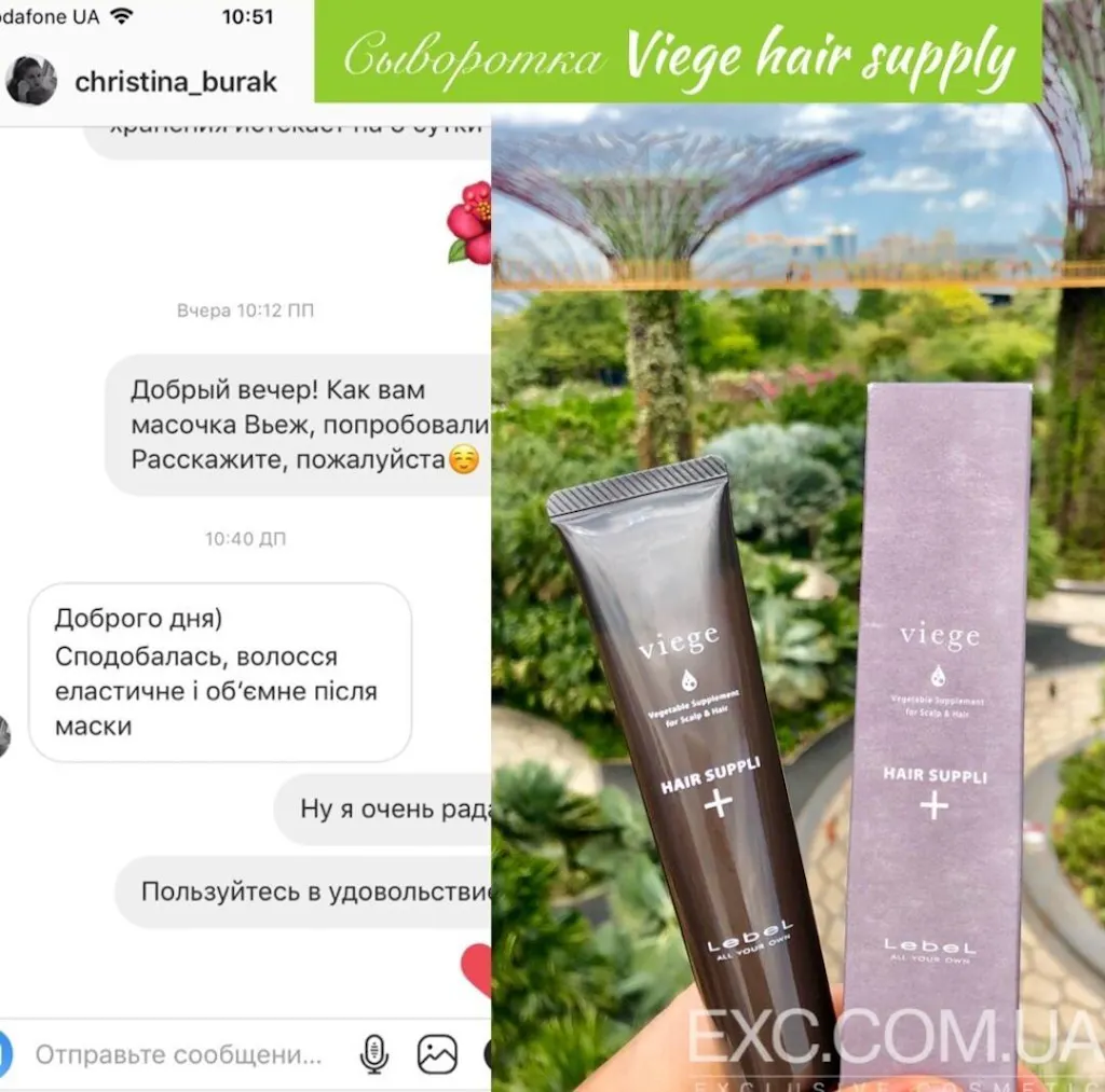 Lebel VIEGE - это очень эффективный уход за волосами, он восстанавливает липидный слой и повышает внутреннюю упругость волосяного стержня. Подходит для волос любого типа. Пористые, тусклые волосы делает блестящими и живыми.